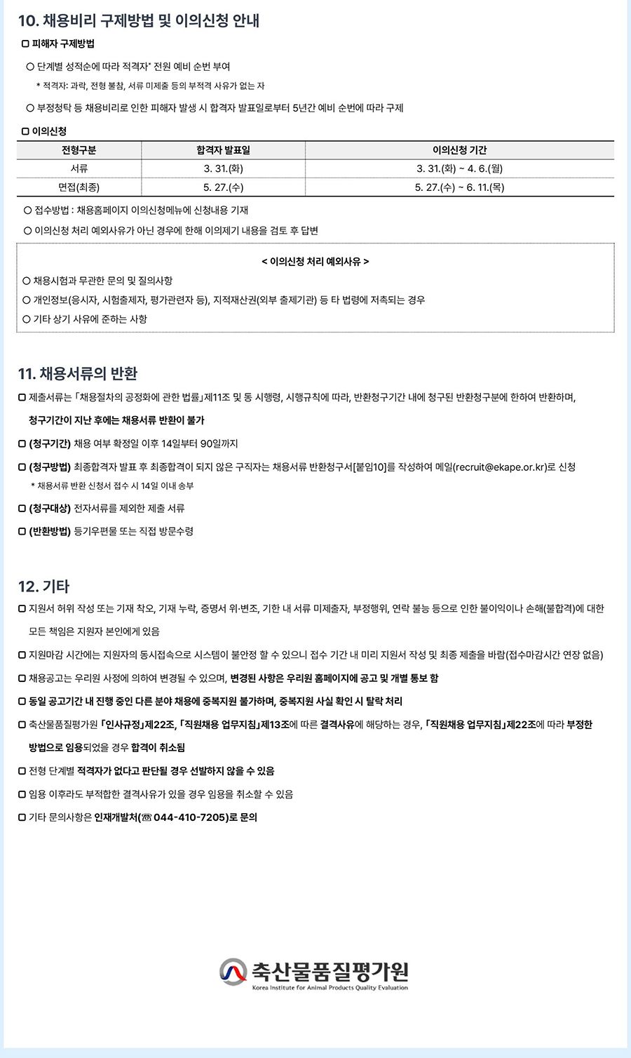¡à (û±¸¹æ¹ý) ÃÖÁ¾ÇÕ°ÝÀÚ ¹ßÇ¥ ÈÄ ÃÖÁ¾ÇÕ°ÝÀÌ µÇÁö ¾ÊÀº ±¸Á÷Àڴ ä¿ë¼·ù ¹Ýȯû±¸¼[ºÙÀÓ10]¸¦ ÀÛ¼ºÇÏ¿© ¸ÞÀÏ(recruit@ekape.or.kr)·Î ½Åû